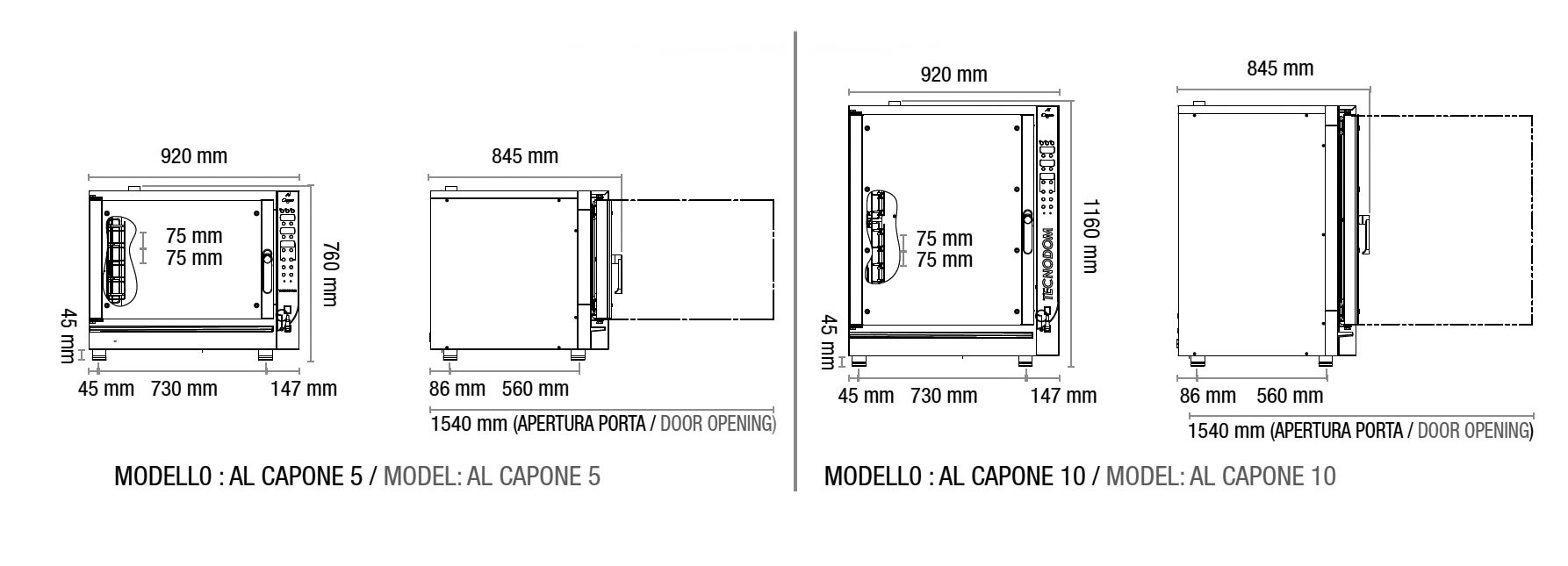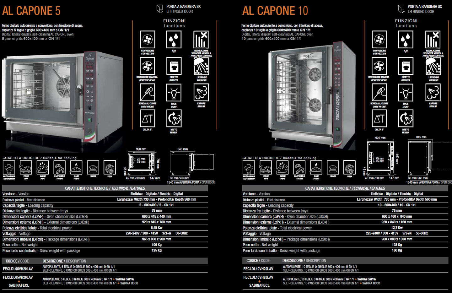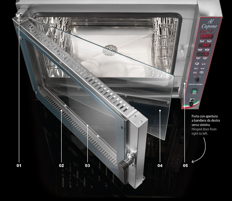 - No 5 programmable cooking for each recipe: possibility of adjusting time, temperature, humidity and core probe parameters automatically during the cooking cycle