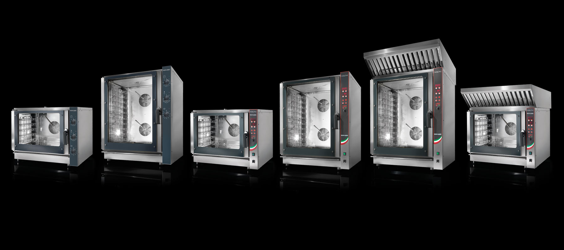 - Mechanical or digital convection ovens line, with water injection, capacity 5 or 10 trays or 600x400 mm grids or GN 1/1.