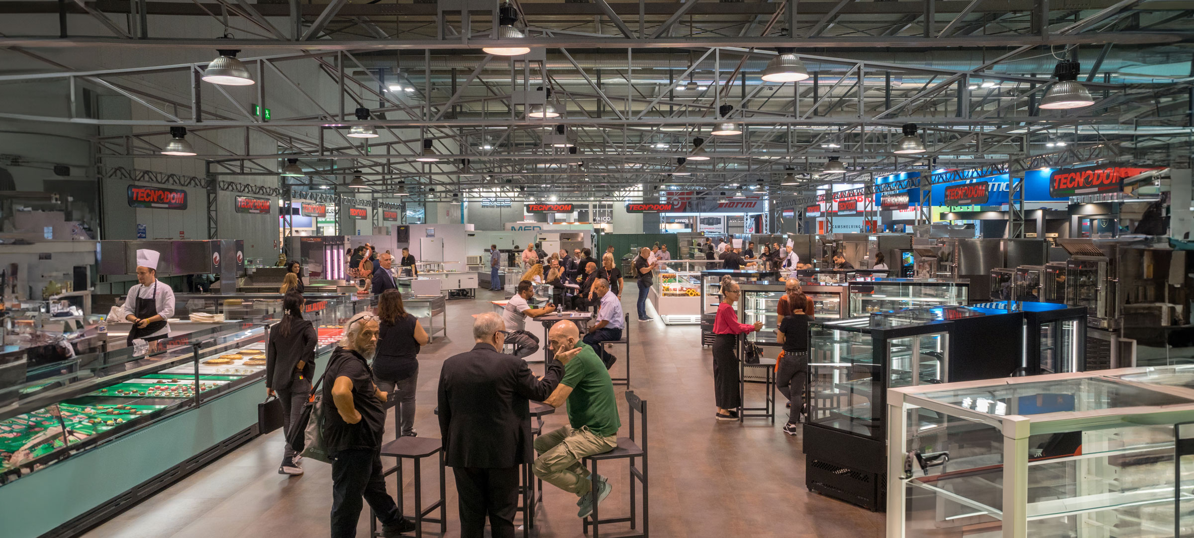 - Three complete islands were operating: dedicated kitchens, refrigerated compositions, pizza counters and cold rooms. Sweet and savory with 15 chefs, pizza makers and pastry chefs preparing, cooking and baking all day long, essential for our hospitality industry, to show what Tecnodom products can do and how indispensable cold rooms are for storing raw materials.