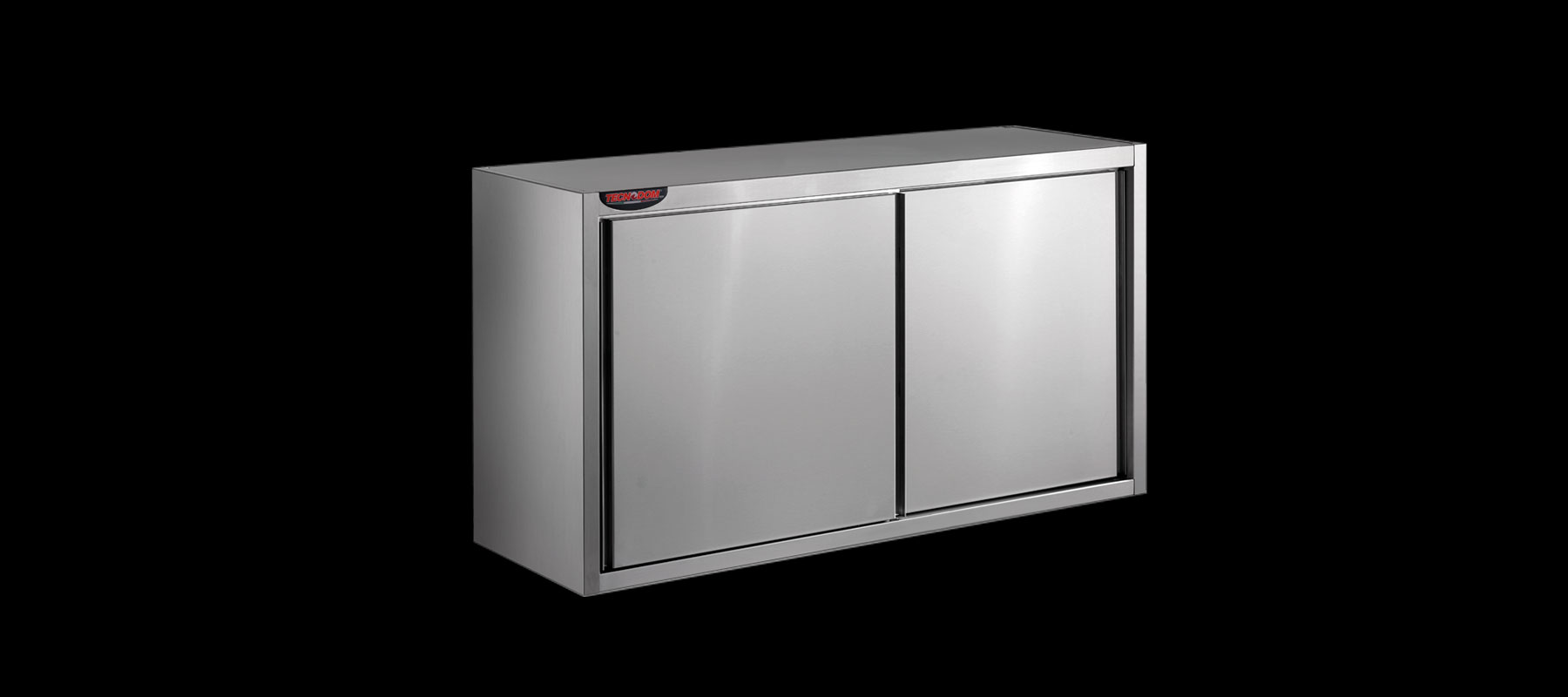 Stainless steel wall-mounted cabinets with sliding doors.