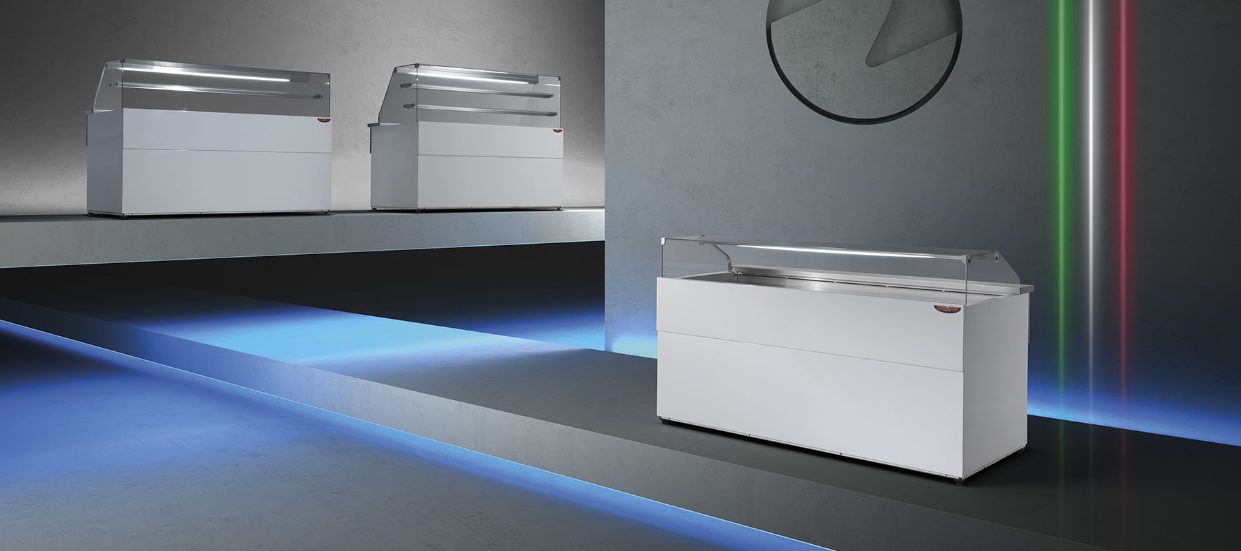 - Easily removable stainless steel display trays for easy cleaning of the display case
