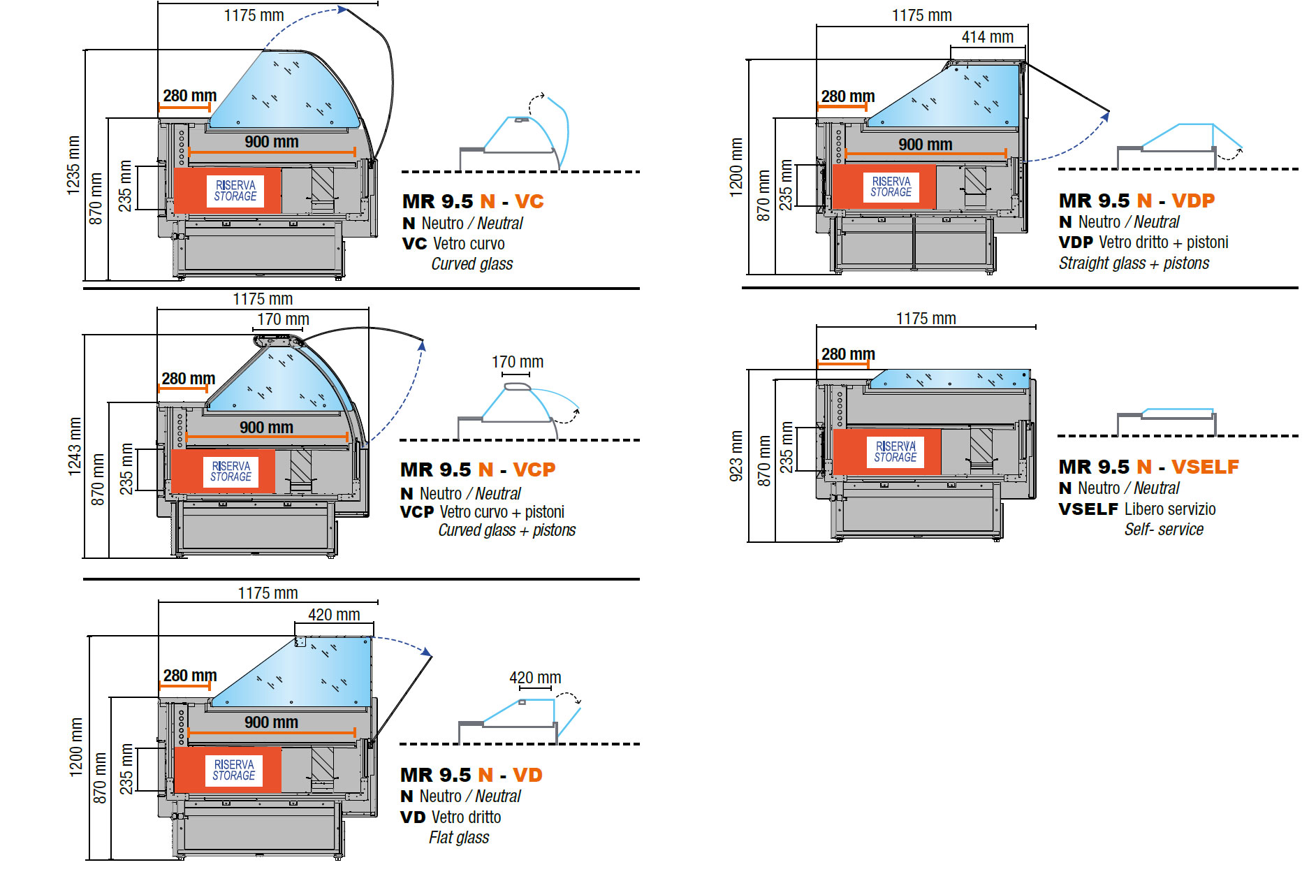 Wide set-ups rage with 90 cm display surface and refrigerated reserve.