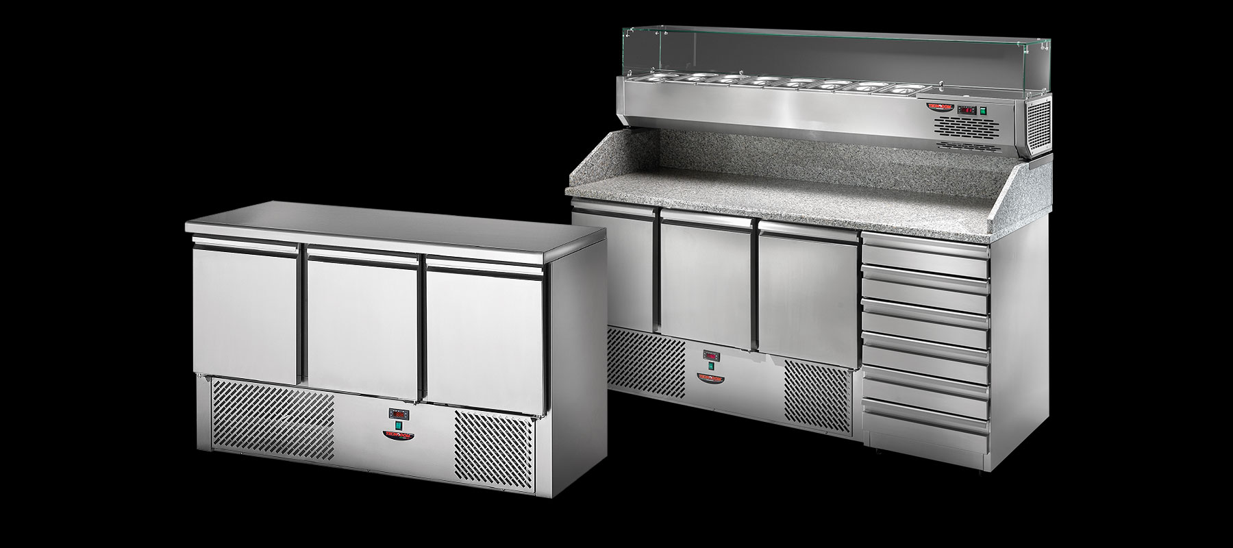 - The Saladette line is ideal for the quick preparation and distribution of salads, side dishes, appetizers and cold dishes or for pizza. Perfect in canteens, dining room services, food distribution areas, supermarkets and self-service areas.