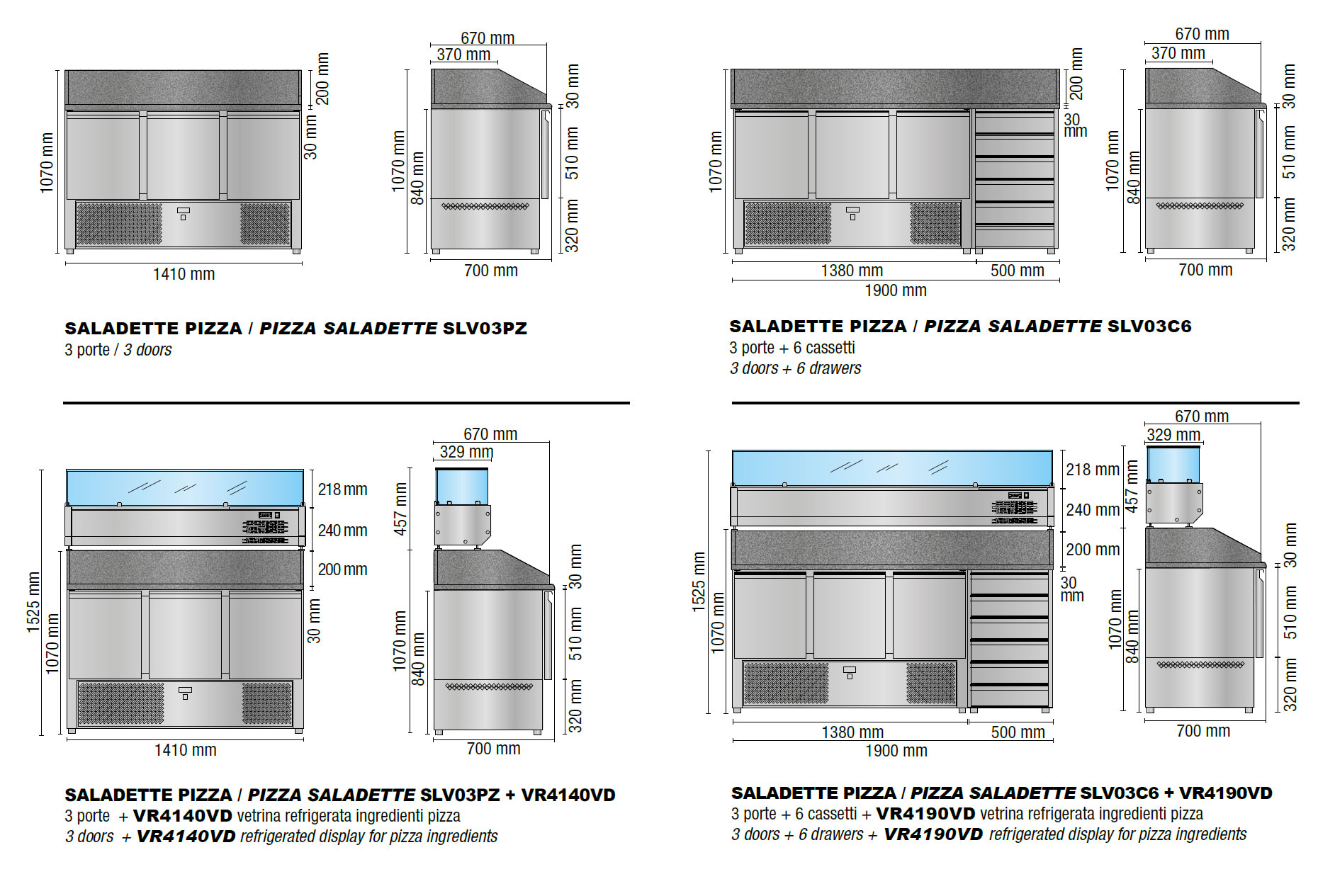 HEIGHT REFRIGERATED DISPLAY FOR PIZZA INGREDIENTS 1525 mm