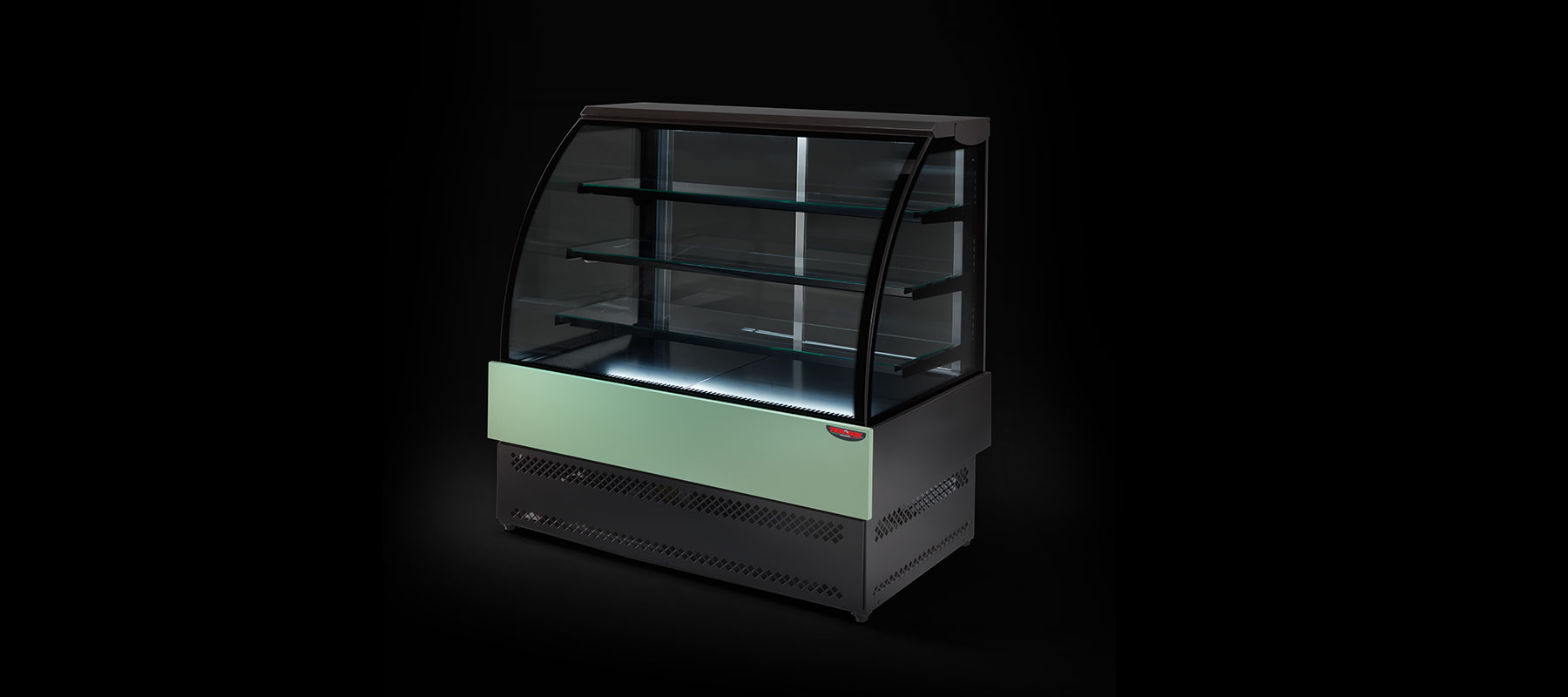 - Wide display area with refrigerated and lighted shelves