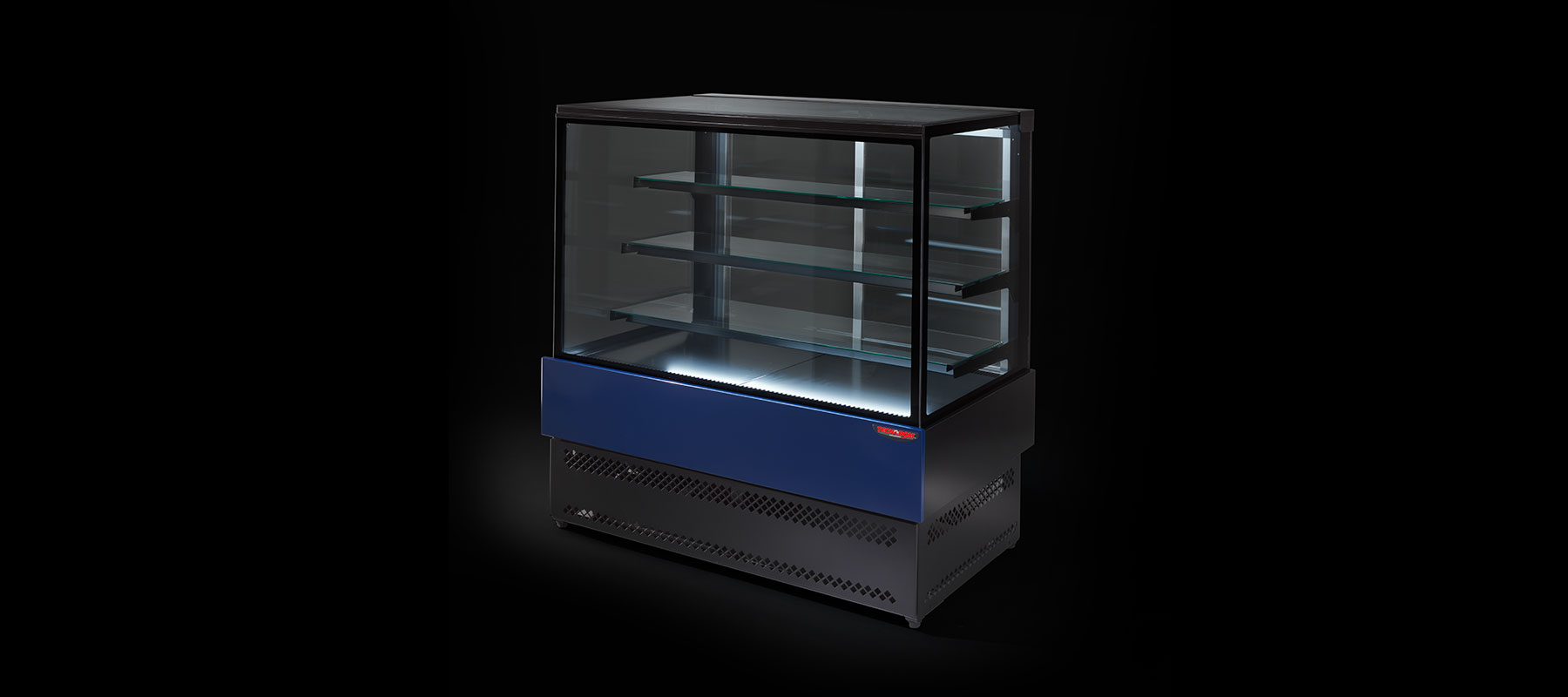 - Wide display area with refrigerated and lighted shelves